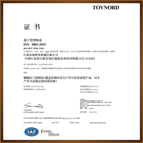 江陰眾海精密機械有限公司生產法蘭多年,我們采用先進、高效、 成熟的生產管理模式。我們的主要產品有盲板法蘭、板式法蘭、承插 焊法蘭、搭接法蘭、帶頸對焊法蘭等。公司產品符合國標、 美標、 日標、歐標等生產標準,并取得 ISO9001,特種設備生產許可證-壓力 管道原件制造,歐盟承壓設備指令認證等各類資質證書。我們可提供 不銹鋼、碳鋼等材料的法蘭。…