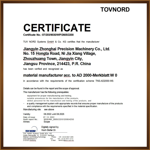 公司產品符合國標、 美標、 日標、歐標等生產標準,并取得 ISO9001,特種設備生產許可證-壓力 管道原件制造,歐盟承壓設備指令認證等各類資質證書。
